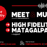 Und natürlich möchten wir auch noch einmal an das Event am kommenden Freitag erinnern. Da können wir MATAGALPA und HIGH FIDELITY im MEET & MUSIC in Springe begrüßen. Wir freuen uns, euch dort zu treffen!