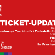 Für das diesjährige Festival gibt es die Karten im Vorverkauf für 25,- € nur noch an den folgenden Verkaufsstellen bis zum 25. Juli ca. 15 Uhr. Danach nur noch an der Tages- bzw. Abendkasse (bei Verfügbarkeit) am 26.07.